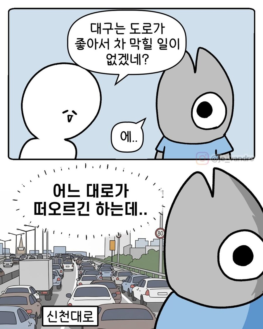 "대구는 도로가 좋아서 차 막힐 일이 없겠다".manga Anonymous | 2026.02.12 10:00 | 조회 590 https://qquing.net/bbs/board.php?bo_table=best&wr_id=468378 주소 복사 이전글 다음글 랜덤 만화 목록 본문 추천 5 비추천 0