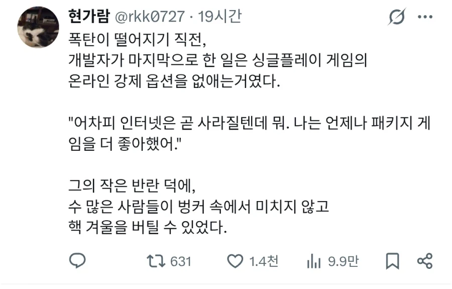 "핵전쟁 직전 게임 개발자는" Anonymous | 2026.04.11 07:52 | 조회 6 https://qquing.net/bbs/board.php?bo_table=humor&wr_id=1889086 주소 복사 이전글 다음글 랜덤 만화 목록