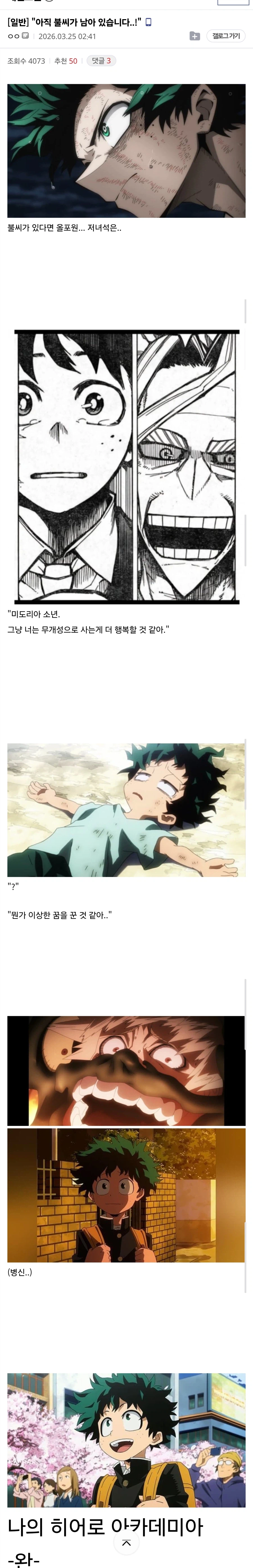"아직 불씨가 남아 있습니다..!" Anonymous | 2026.03.25 19:39 | 조회 6 https://qquing.net/bbs/board.php?bo_table=humor&wr_id=1867555 주소 복사 이전글 다음글 랜덤 만화 목록 본문 추천 0 비추천 0