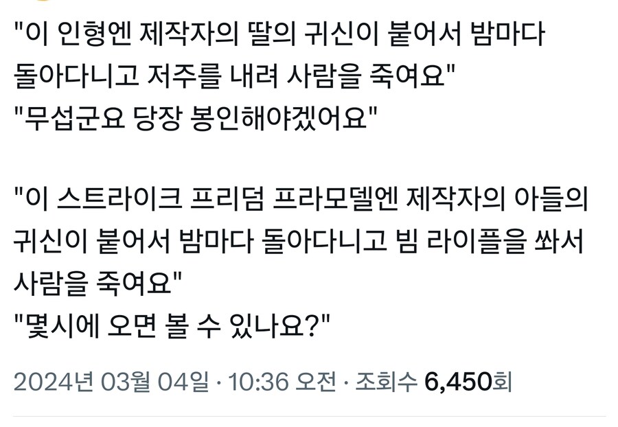 "이 인형엔 귀신이 들었다" Anonymous | 2026.04.07 11:50 | 조회 6 https://qquing.net/bbs/board.php?bo_table=humor&wr_id=1884326 주소 복사 이전글 다음글 랜덤 만화 목록 본문 추천 0 비추천 0