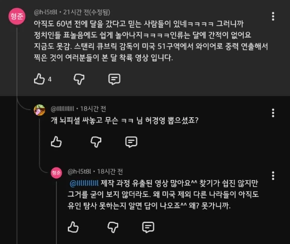 "스탠리 큐브릭이 51구역에서 달착륙영상 제작과정 유출되었다" Anonymous | 2026.04.08 15:45 | 조회 10 https://qquing.net/bbs/board.php?bo_table=humor&wr_id=1885820 주소 복사 이전글 다음글 랜덤 만화 목록 본문 추천 0 비추천 0