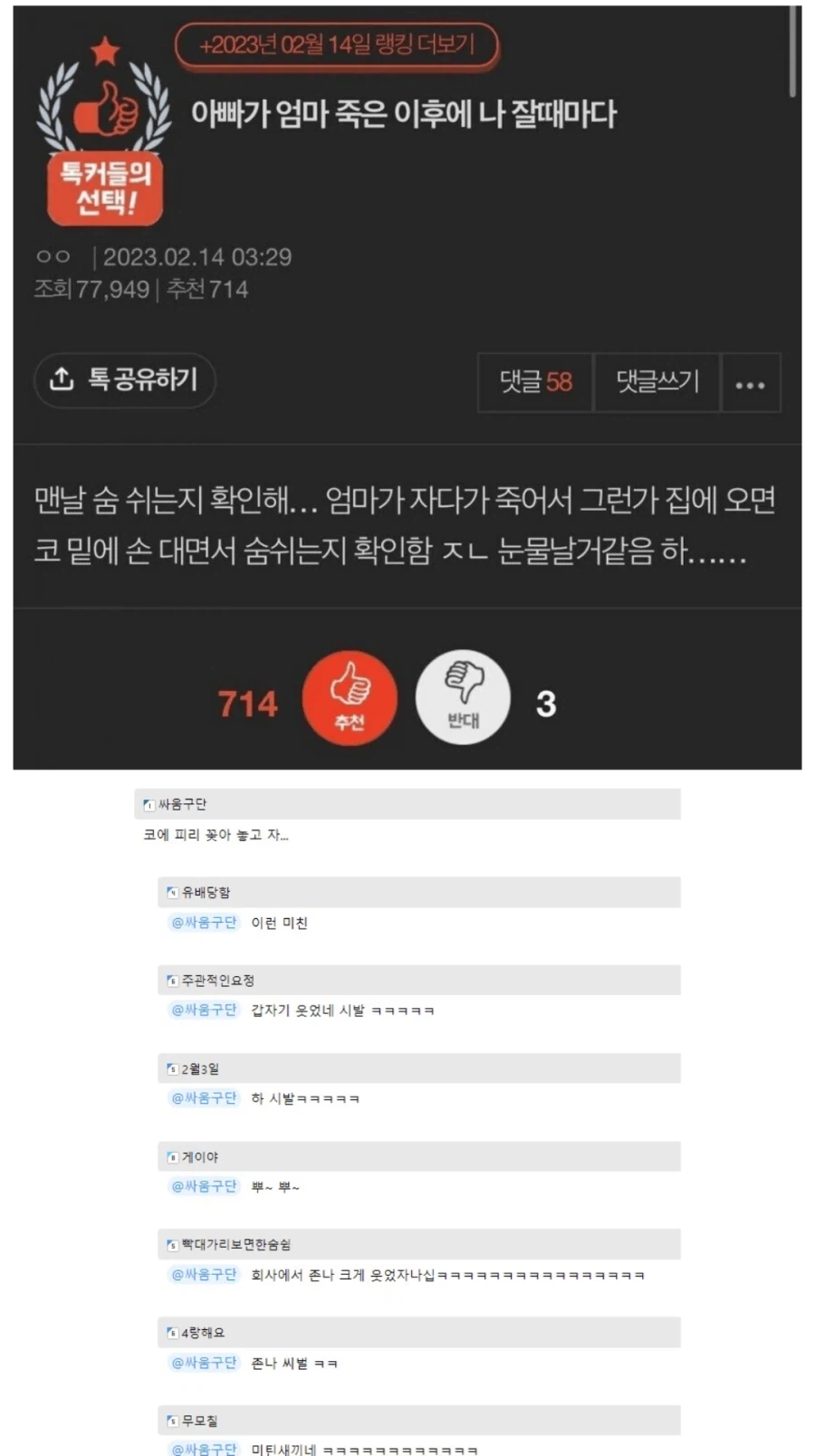 "엄마가 돌아가신 이후 생긴 아빠의 버릇" Anonymous | 2026.04.08 19:54 | 조회 7 https://qquing.net/bbs/board.php?bo_table=humor&wr_id=1886068 주소 복사 이전글 다음글 랜덤 만화 목록 본문 추천 0 비추천 0