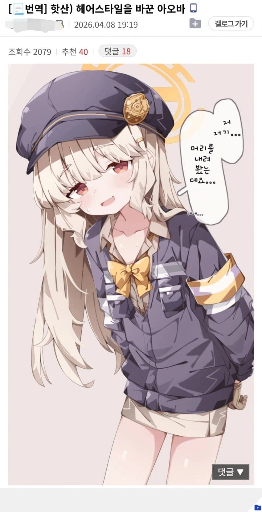 "저..저기..머리를 내려봤는데요..." Anonymous | 2026.04.09 09:58 | 조회 11 https://qquing.net/bbs/board.php?bo_table=humor&wr_id=1886779 주소 복사 이전글 다음글 랜덤 만화 목록 본문 추천 0 비추천 0