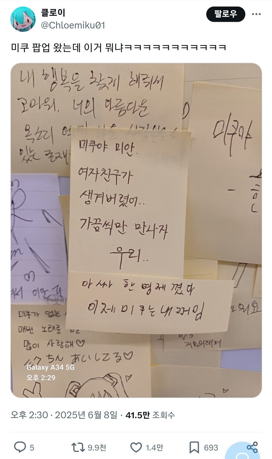 미쿠 팝업에 붙은 포스트 잇을 본 족토 작가가 남긴 그림.jpg Anonymous | 2025.10.27 17:37 | 조회 6 https://qquing.net/bbs/board.php?bo_table=humor&wr_id=1680885 주소 복사 이전글 다음글 랜덤 만화 목록 본문 추천 0 비추천 0