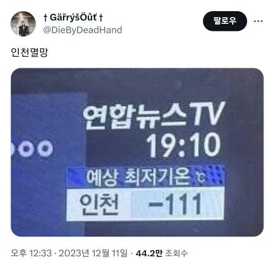 '인천광역시가 소멸한 지 벌써 1년 반이 지났다' Anonymous | 2025.09.22 19:52 | 조회 7 https://qquing.net/bbs/board.php?bo_table=humor&wr_id=1638492 주소 복사 이전글 다음글 랜덤 만화 목록 본문 아직도 그곳에 얼마나 많은 게 남아있는지는 아무도 모른다 과거 공항과 국제도시의 잊혀진 잔해를 뒤덮은 얼어붙은 대지만이 보일 뿐.... 추천 0 비추천 0