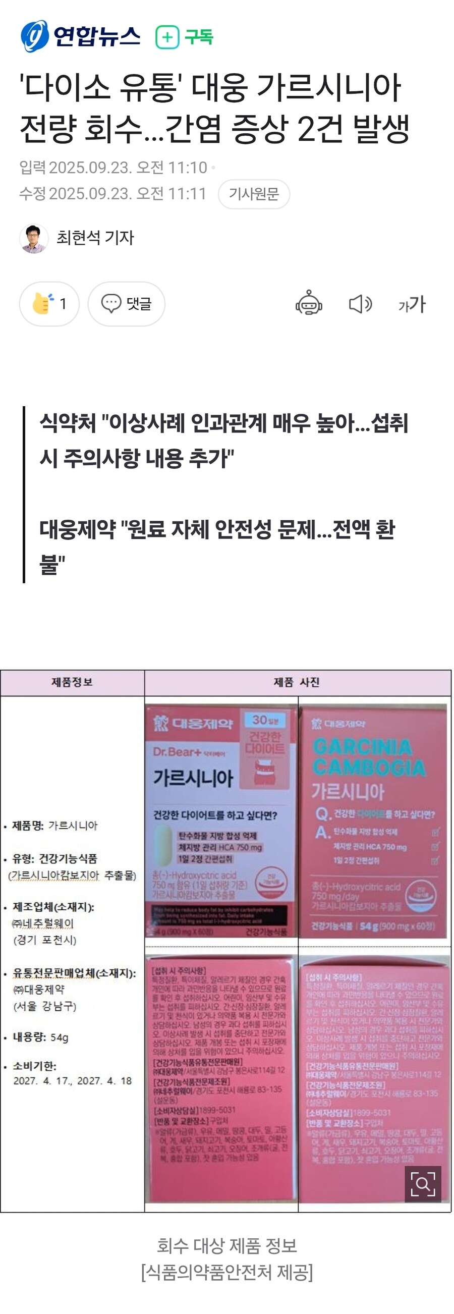 '다이소 유통' 대웅 가르시니아 전량 회수…간염 증상 2건 발생 Anonymous | 2025.09.23 13:20 | 조회 6 https://qquing.net/bbs/board.php?bo_table=humor&wr_id=1639432 주소 복사 이전글 다음글 랜덤 만화 목록 본문 추천 0 비추천 0