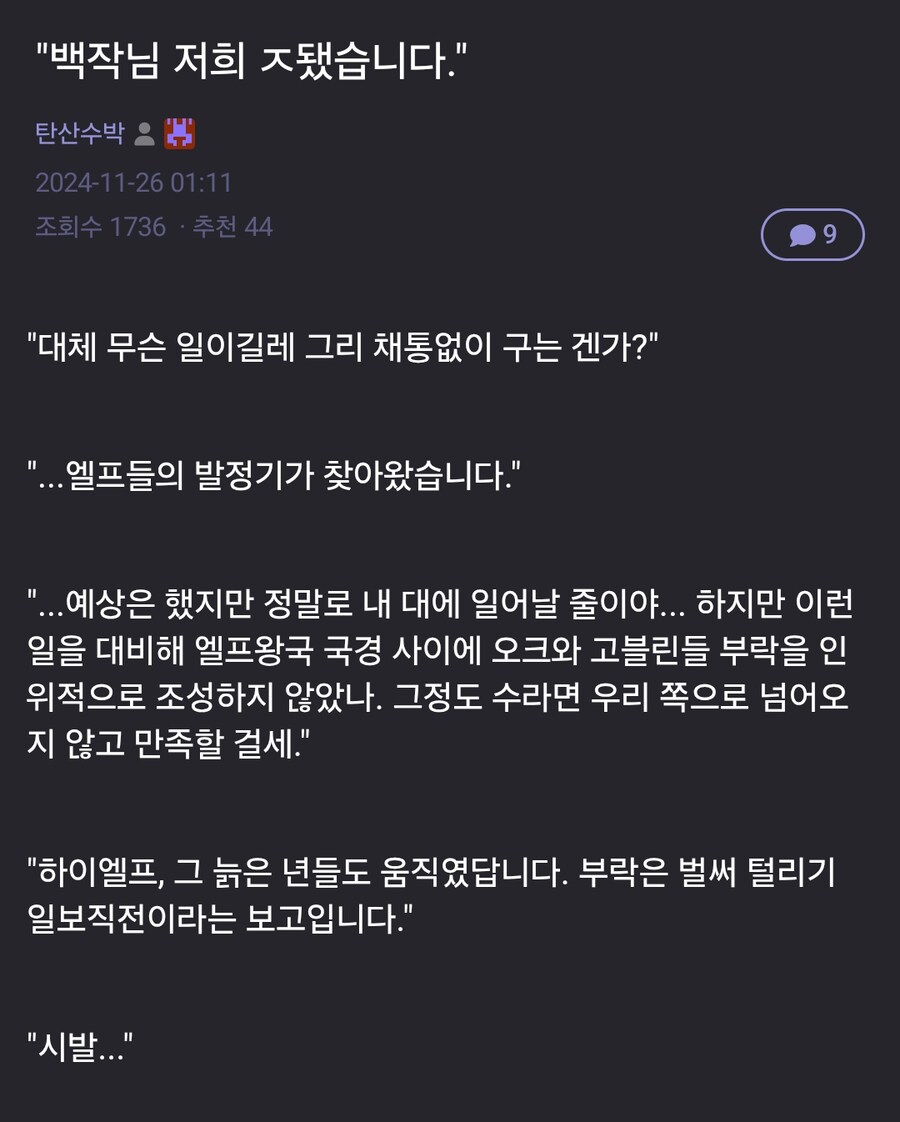 "백작님 저희 ㅈ됐습니다." Anonymous | 2025.09.27 05:33 | 조회 78 https://qquing.net/bbs/board.php?bo_table=humor&wr_id=1643951 주소 복사 이전글 다음글 랜덤 만화 목록 본문 추천 0 비추천 0