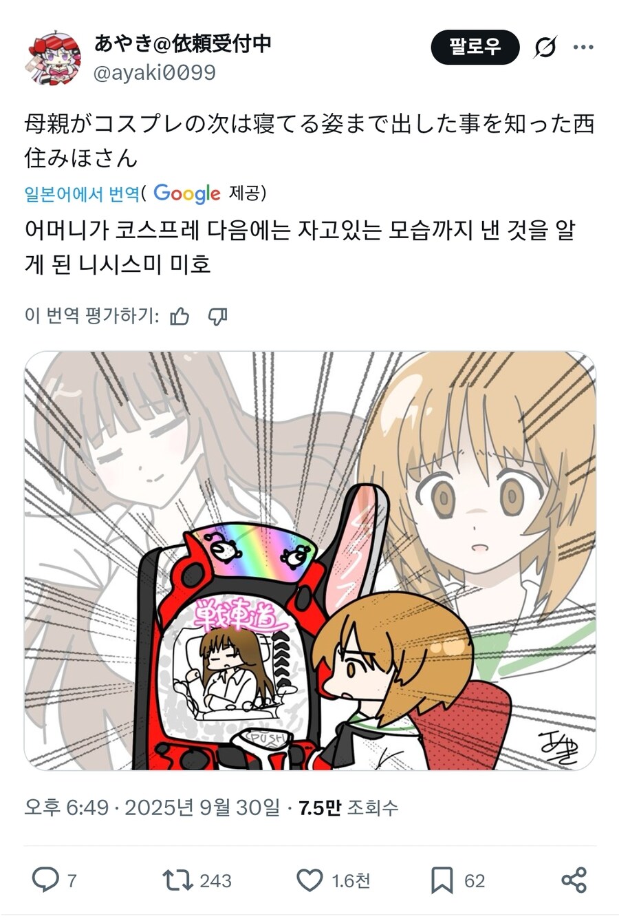 "잘 들어주세요 미호, 니시즈미 가의 재정은 이미 파탄이 났습니다" Anonymous | 2025.10.02 09:24 | 조회 7 https://qquing.net/bbs/board.php?bo_table=humor&wr_id=1649821 주소 복사 이전글 다음글 랜덤 만화 목록 본문 "그리고 그 니시즈미 가의 재정을 채워넣은게 바로 오레사마입니다." 추천 0 비추천 0