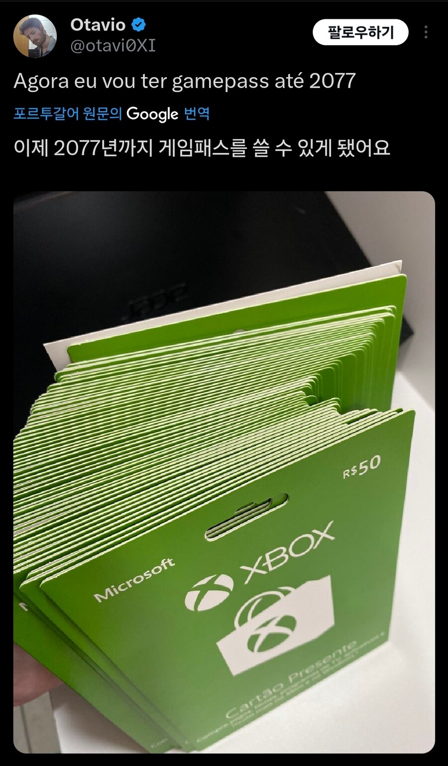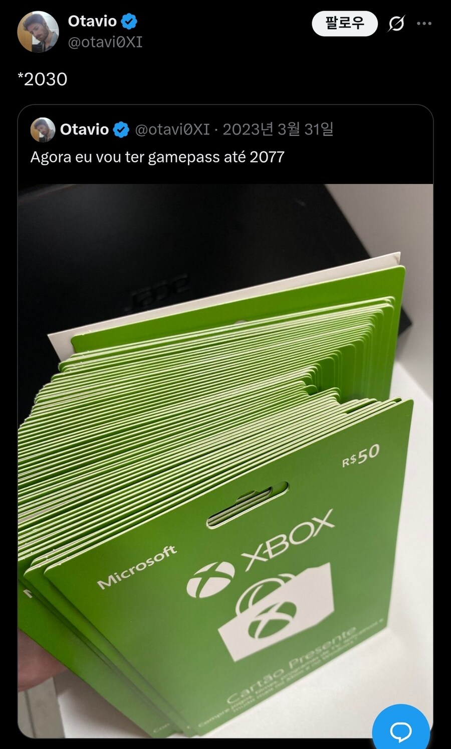 "2077년까지 게임패스 낭낭하게 쓸듯 ㅋㅋㅋㅋ".twit Anonymous | 2025.10.03 02:20 | 조회 12 https://qquing.net/bbs/board.php?bo_table=humor&wr_id=1650817 주소 복사 이전글 다음글 랜덤 만화 목록 본문 "2030년까지..." 추천 0 비추천 0