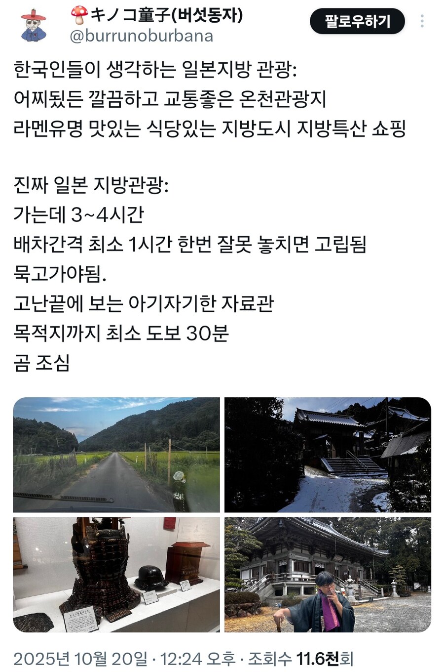 일본의 지방 시골여행 Anonymous | 2025.10.22 09:12 | 조회 18 https://qquing.net/bbs/board.php?bo_table=humor&wr_id=1673672 주소 복사 이전글 다음글 랜덤 만화 목록 본문 추천 0 비추천 0