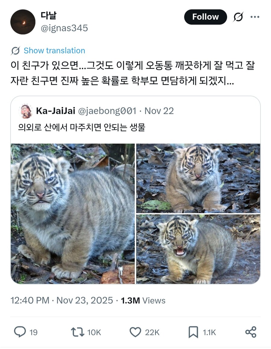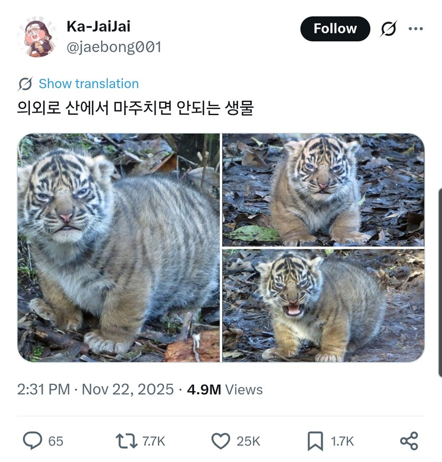 "의외로 산에서 만나면 안 되는 생물" Anonymous | 2025.11.24 16:50 | 조회 7 https://qquing.net/bbs/board.php?bo_table=humor&wr_id=1715176 주소 복사 이전글 다음글 랜덤 만화 목록 본문 추천 0 비추천 0