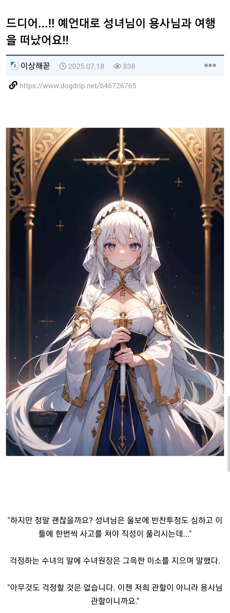 "마침내...! 성녀님이 여행을 떠나셨어요!!!" Anonymous | 2026.02.24 21:41 | 조회 20 https://qquing.net/bbs/board.php?bo_table=humor&wr_id=1828889 주소 복사 이전글 다음글 랜덤 만화 목록 본문 반품은 안됩니다 용사여 추천 0 비추천 0