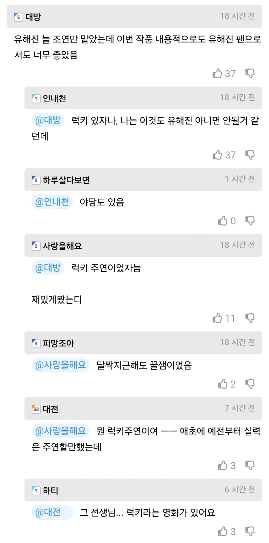 "유해진 럭키 주연이잖아 ㅋㅋㅋㅋㅋ".jpg Anonymous | 2026.02.25 22:02 | 조회 14 https://qquing.net/bbs/board.php?bo_table=humor&wr_id=1830236 주소 복사 이전글 다음글 랜덤 만화 목록 본문 "유해진은 럭키 주연입니다" "그게 럭키라는 영화니까..." 추천 0 비추천 0