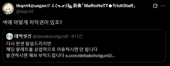 "그림체의 저작권은 모르겠는데 언제부터 색에 저작권이 있는거냐" Anonymous | 2026.02.26 12:58 | 조회 21 https://qquing.net/bbs/board.php?bo_table=humor&wr_id=1831003 주소 복사 이전글 다음글 랜덤 만화 목록 본문 반타블랙은 도료에 대한 저작권이다. 추천 0 비추천 0