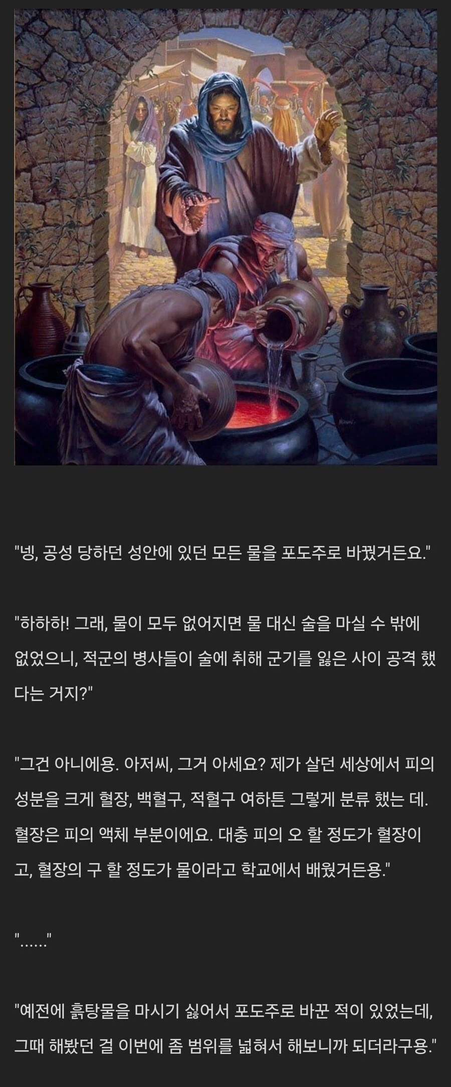'물을 포도주로 바꾸는 능력? 그딴걸 어디에다 쓰지?' Anonymous | 2026.03.08 07:57 | 조회 21 https://qquing.net/bbs/board.php?bo_table=humor&wr_id=1843614 주소 복사 이전글 다음글 랜덤 만화 목록 본문 추천 0 비추천 0