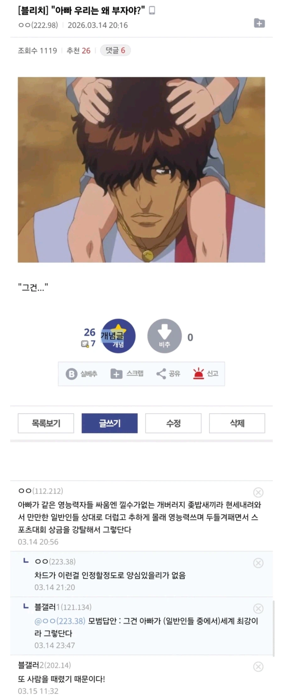 "아빠 우리는 왜 부자야?" Anonymous | 2026.03.17 20:57 | 조회 6 https://qquing.net/bbs/board.php?bo_table=humor&wr_id=1856429 주소 복사 이전글 다음글 랜덤 만화 목록 본문 추천 0 비추천 0