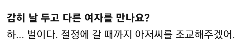 "어째서 다른 여자를 만나시는거죠" Anonymous | 2026.03.23 20:36 | 조회 7 https://qquing.net/bbs/board.php?bo_table=humor&wr_id=1864733 주소 복사 이전글 다음글 랜덤 만화 목록 본문 "저라는 남자가 있는데" 추천 0 비추천 0