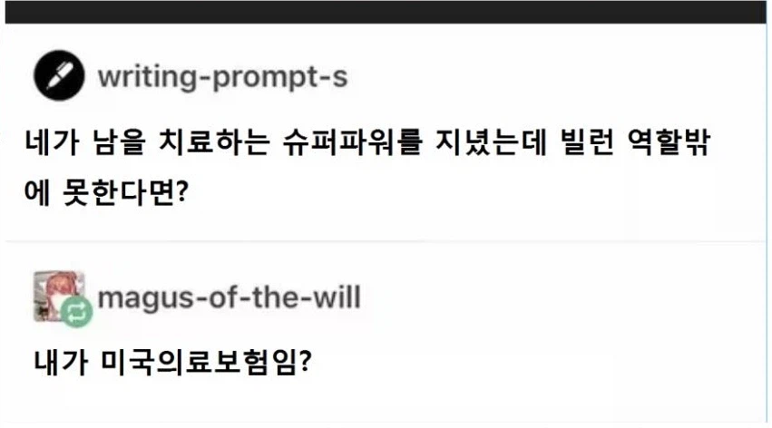 "당신은 남을 치유하는 능력이 있지만 빌런 입니다." Anonymous | 2026.03.25 17:39 | 조회 11 https://qquing.net/bbs/board.php?bo_table=humor&wr_id=1867394 주소 복사 이전글 다음글 랜덤 만화 목록 본문 추천 0 비추천 0