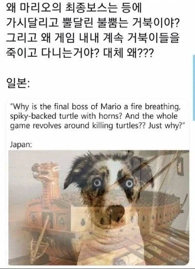"왜 마리오는 게임 내내 거북이들을 죽이고 다니는거야? 왜?" Anonymous | 2026.03.26 08:26 | 조회 6 https://qquing.net/bbs/board.php?bo_table=humor&wr_id=1868240 주소 복사 이전글 다음글 랜덤 만화 목록 본문 추천 0 비추천 0