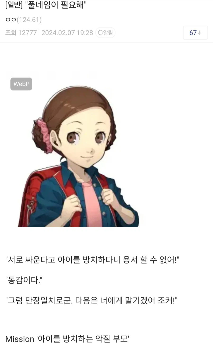 "페르소나 3이 페르소나 5 스토리를 가졌다면" Anonymous | 2026.03.26 15:39 | 조회 6 https://qquing.net/bbs/board.php?bo_table=humor&wr_id=1868627 주소 복사 이전글 다음글 랜덤 만화 목록 본문 추천 0 비추천 0