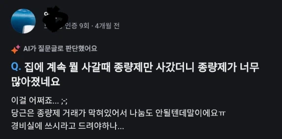 "집에 계속 뭘 사갈때 종량제봉투만 사갔더니 너무 많아졌네요" Anonymous | 2026.03.26 16:34 | 조회 10 https://qquing.net/bbs/board.php?bo_table=humor&wr_id=1868683 주소 복사 이전글 다음글 랜덤 만화 목록 본문 안돼!!!! 추천 0 비추천 0
