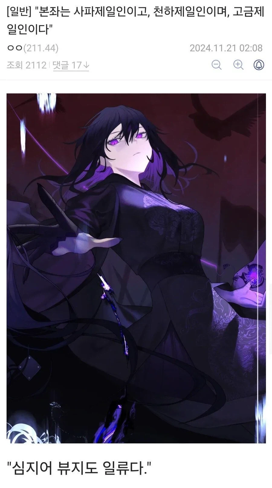 "본녀는 사파제일인이고 천하제일인이며 고금제일인이다" Anonymous | 2026.03.30 23:10 | 조회 10 https://qquing.net/bbs/board.php?bo_table=humor&wr_id=1874623 주소 복사 이전글 다음글 랜덤 만화 목록 본문 추천 0 비추천 0