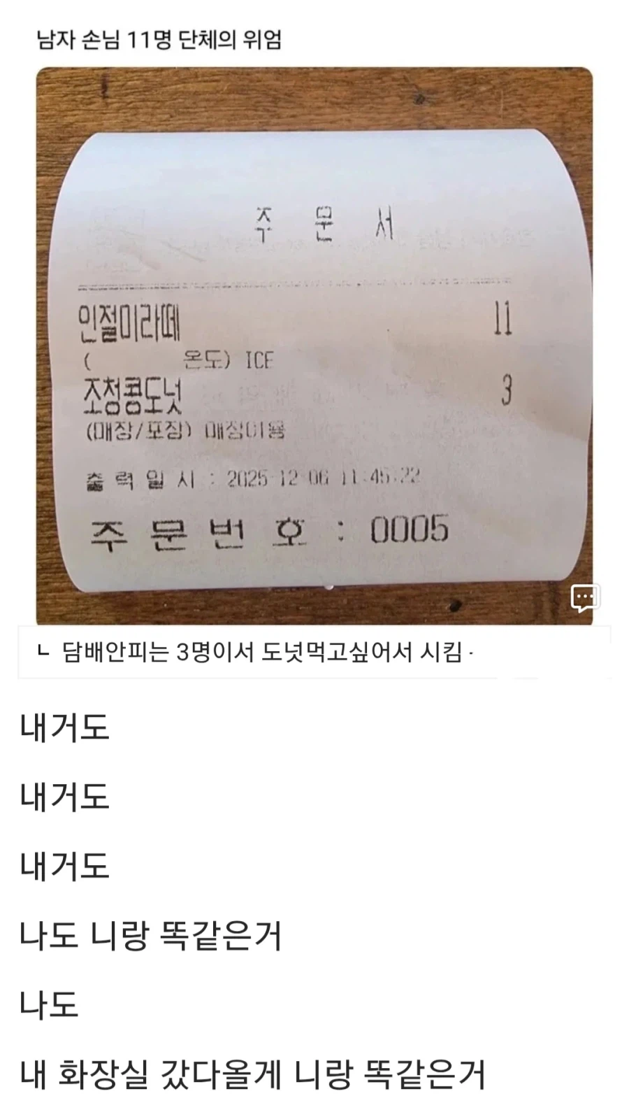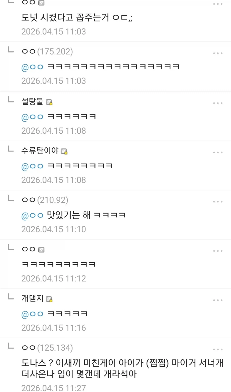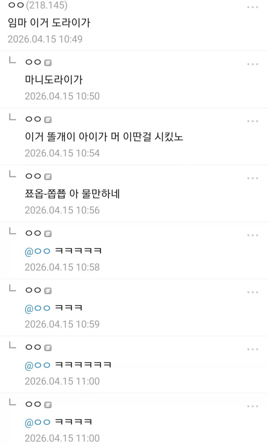 "내 담배피고올게 암거나 시켜놔라~" Anonymous | 2026.04.16 00:37 | 조회 7 https://qquing.net/bbs/board.php?bo_table=humor&wr_id=1895611 주소 복사 이전글 다음글 랜덤 만화 목록