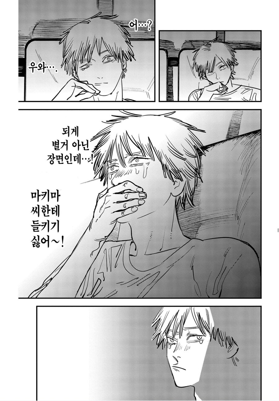 체인소맨) 영화관 씬 1부 결말이랑 엮어보면 Anonymous | 2025.10.09 00:28 | 조회 705 https://qquing.net/bbs/board.php?bo_table=manga&wr_id=3626670 주소 복사 이전글 다음글 랜덤 만화 목록 본문 서로 안아주는 장면에 눈물을 흘리는 덴지와 마키마. "덴지... 내 꿈은, 누군가에게 안기는 거였어. 별것도 아니라고 생각하지? 하지만 다들 나를 무서워해서 아무도 그렇게 해주려 하지 않았어." "덴지, 지배의 악마의 꿈도 이뤄줬으면 해. 그녀는 가족 같은 것을 계속 동경해왔어. 많이 안아줘." 그냥 영화 자체에 감동한 걸지도 모르지만 둘 다 바라던 게 정말 별것도 아닌 간단한 거였다는 걸 생각해보면 재미있는 부분 추천 0 비추천 0